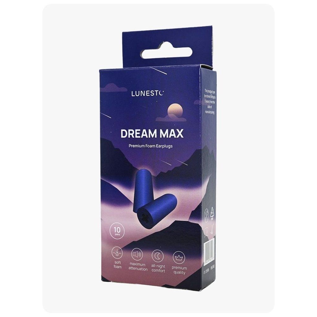 Lunesto Dream Max jsou perfektní volbou pro každého, kdo potřebuje skutečné ticho během spánku – ať už jde o chrápání partnera, hluk z ulice nebo další zvuky s nízkou frekvencí, které běžné špunty často nedokážou potlačit. Díky mimořádně vysoké míře utlumení SNR 37 dB poskytují jeden z nejvyšších stupňů tlumení ve své kategorii a spolehlivě pomáhají navodit nerušený noční odpočinek. Jsou vyrobené z velmi měkké uretanové pěny, která se dokonale přizpůsobí tvaru ucha, což zajišťuje maximální pohodlí i při dlouhodobém nošení. Vhodné jsou pro spánek, cestování, noční směny i pro osoby se zvýšenou citlivostí na hluk.