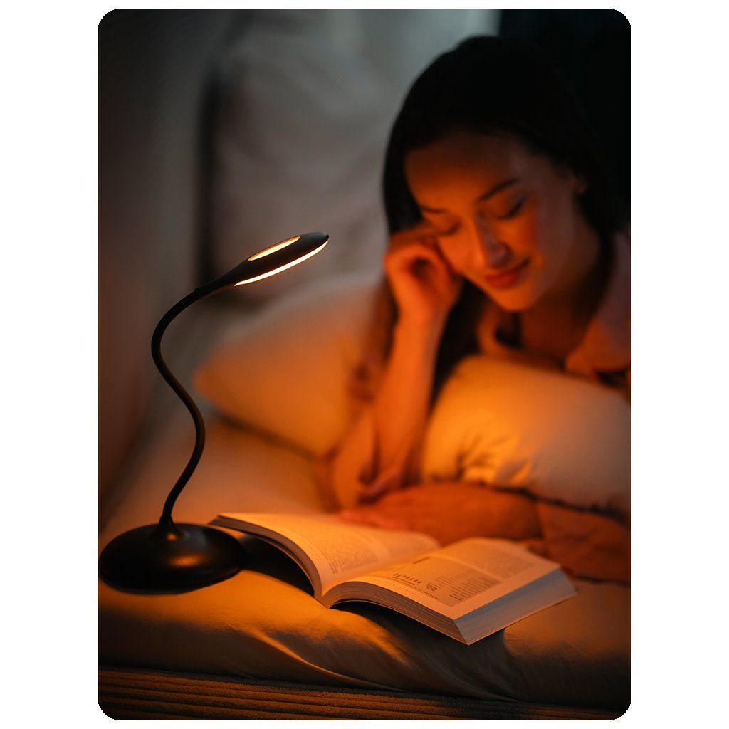 Lunesto LED lampička na čtení je navržena tak, aby podporovala váš přirozený spánkový cyklus. Díky oranžovému světlu zcela bez modré složky nenarušuje produkci melatoninu, klíčového hormonu pro kvalitní spánek. Ať už čtete knihu před spaním nebo se staráte o miminko v noci, můžete se spolehnout na světlo, které nenaruší váš biologický rytmus. Je to perfektní volba pro ty, kteří chtějí skloubit komfort s péčí o své zdraví.