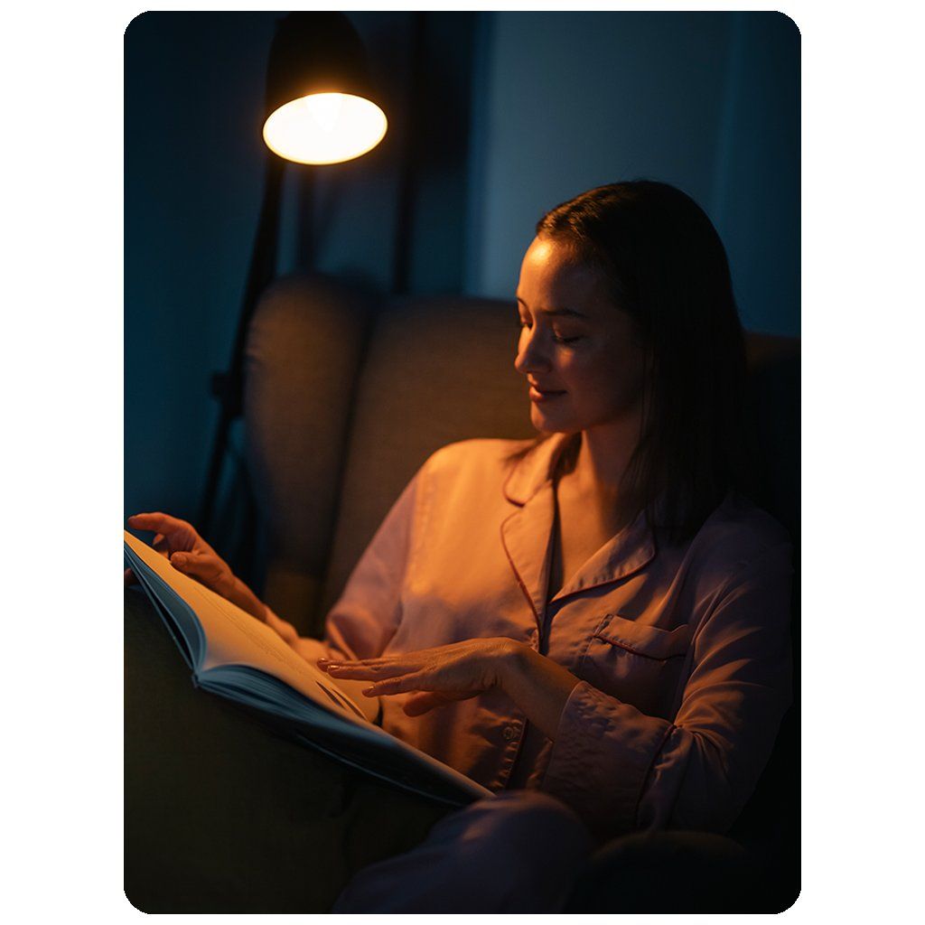 Přidejte tuto žárovku do vašeho nočního rituálu a objevte rozdíl, který Vám může pomoci lépe spát a cítit se lépe po probuzení. Obklopte se klidným světlem, které pomáhá uklidnit myšlení a připravit tělo na noční odpočinek.